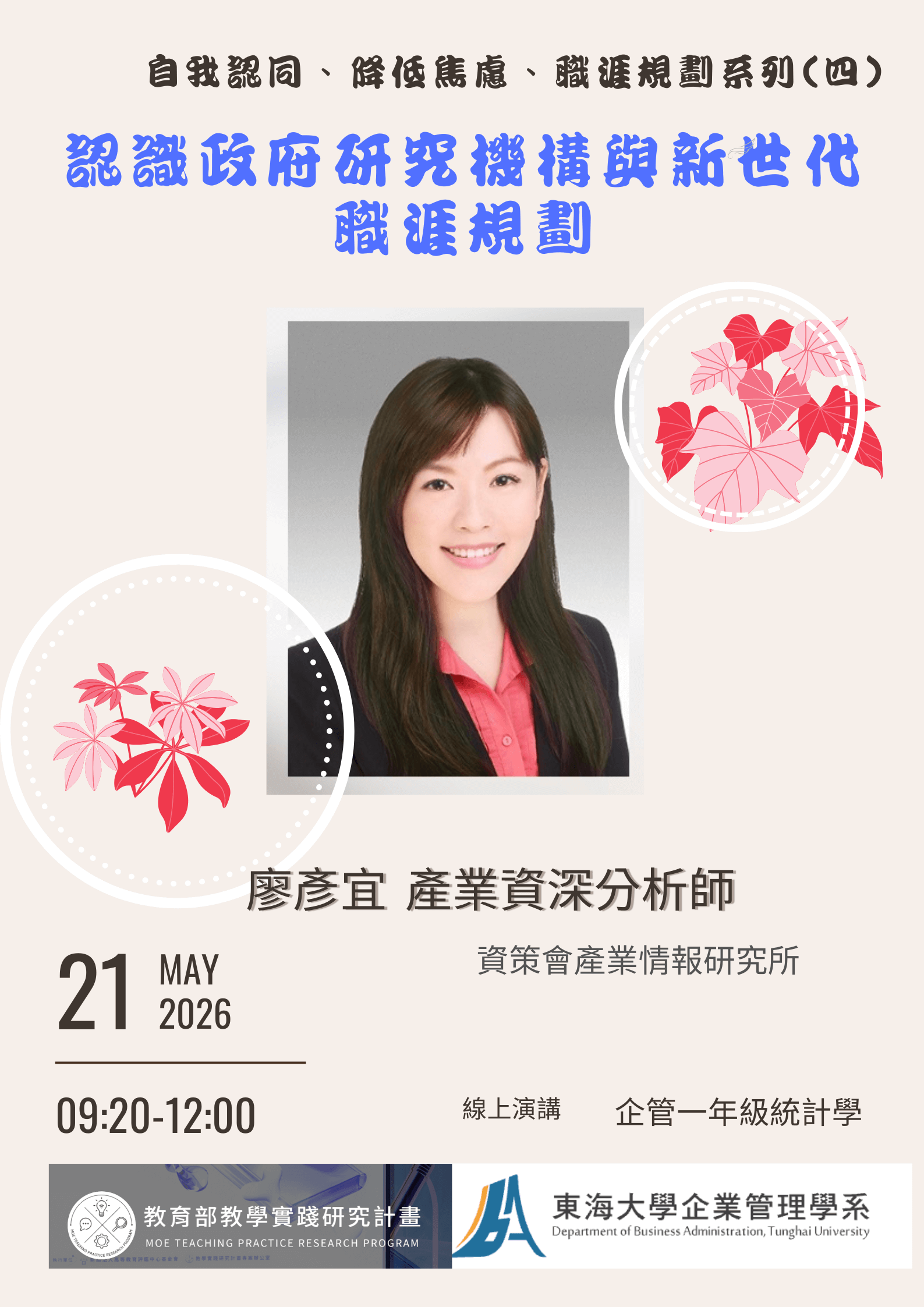 本次講座系列主題:「自我認同、降低焦慮、職涯規劃」